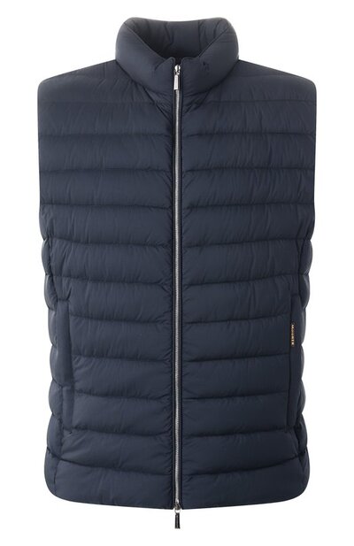 Стеганый жилет Calaf-S3 из линии Acqua выполнили из водоотталкивающего нейлона с добавлением полиуретана, а утеплили изделие гусиным пухом. Модель на встречной молнии дополнили внутренним и парой внешних карманов, украсив один из них брендированным ярлыком.