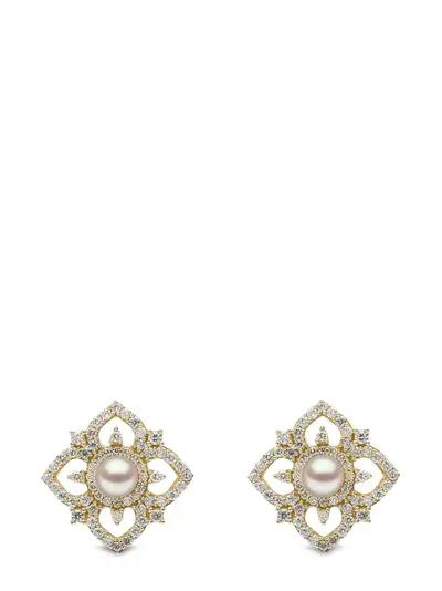 18kt yellow gold pavé-set diamonds Akoya pearls butterfly fastening Pearls should be the last thing that you put on in the morning and the first thing you take off at night. Avoid contact with perfumes or creams, and simply wipe with a soft cloth to clean. Normal everyday use and external agents may reduce the lustre of gemstones and gold surfaces. To maintain, use specific, non-abrasive products specially meant for cleaning jewellery.