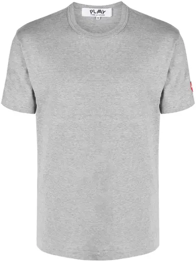 light grey cotton appliqué detail crew neck short sleeves straight hem