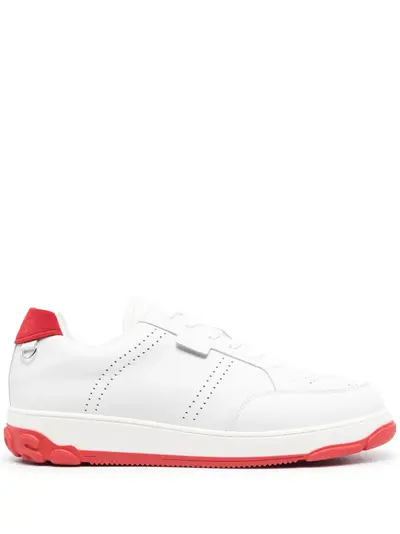 optical white/red calf leather debossed logo to the rear heart charm panelled design perforated detailing contrasting heel counter almond toe front lace-up fastening branded insole contrasting rubber sole unisex When buying this unisex item, keep in mind that it is graded in standard men's sizing.