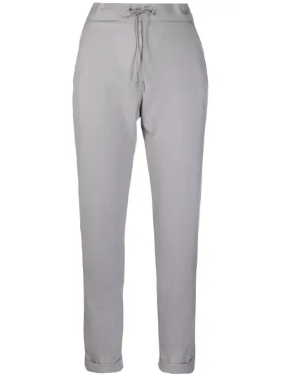 light grey virgin wool drawstring waist rear elasticated waistband two side inset pockets tapered leg turn-up hem