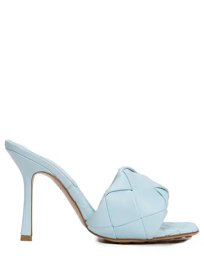 -Мюли из кожи небесно-голубого цвета от BOTTEGA VENETA.