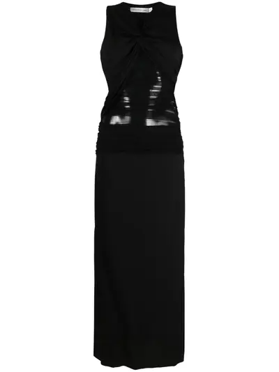 black stretch-jersey tulle overlay cut-out detailing twist detailing V-neck sleeveless ankle-length straight hem