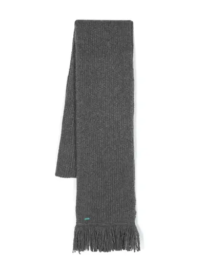 grey cashmere-silk blend logo plaque ribbed knit fringed edge