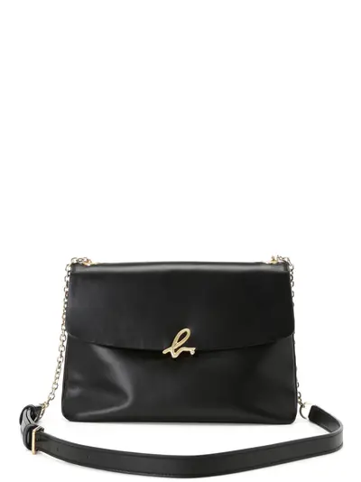 black calf leather smooth grain logo plaque foldover top with magnetic fastening leather and chain-link shoulder strap partitioned compartment slip pocket to the rear internal zip-fastening pocket internal logo patch