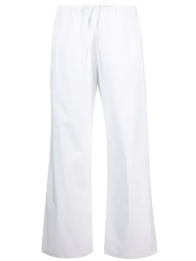 white organic cotton poplin texture straight leg elasticated drawstring waistband two side inset pockets rear patch pocket unlined
