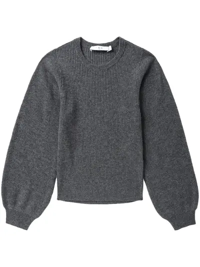 anthracite grey cashmere ribbed knit crew neck long sleeves straight hem