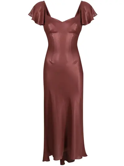 camel brown metallic effect sweetheart neck open back short sleeves ruched detailing rear tie fastening concealed rear fastening high-low hem