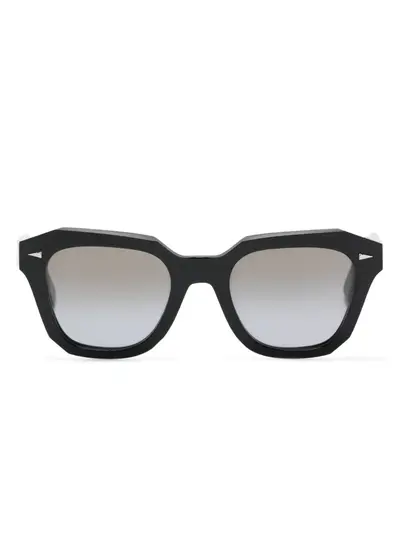 black acetate wayfarer frame UV-protective grey gradient lenses polished details straight arms with curved tips These glasses come with a protective case.