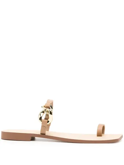 beige calf leather decorative buckle detail single loop square open toe branded leather insole gold-tone hardware