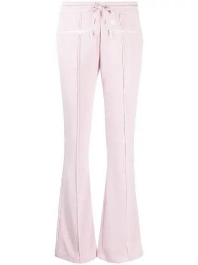 powder pink stretch-design logo patch to the front front zip fastening pockets drawstring fastening elasticated waistband flared