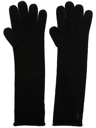 black wool-cashmere blend knitted construction signature Polo Pony motif full-finger design elbow length