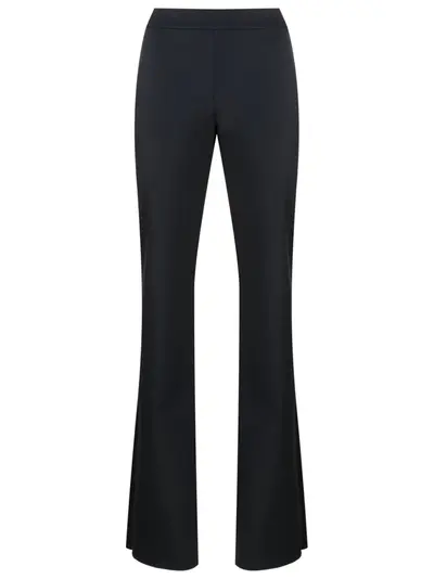 jet black stretch-design tonal stitching elasticated waistband high-waisted flared straight hem
