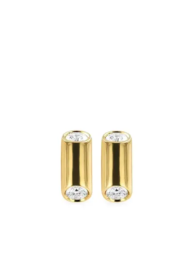 18kt yellow gold polished finish tube design 0.58ct round brilliant cut diamonds G VS diamond colour and clarity post-back fastening for pierced ears These earrings come as a pair. Normal everyday use and external agents may reduce the lustre of gemstones and gold surfaces. To maintain, use specific, non-abrasive products specially meant for cleaning jewellery.
