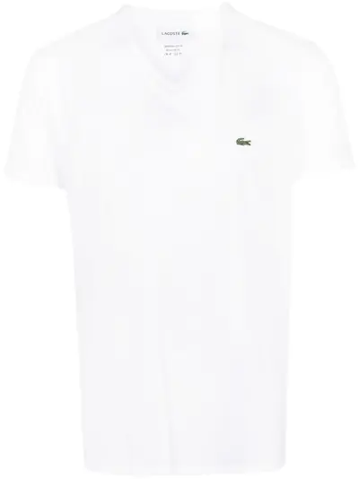 optical white cotton soft jersey logo patch at the chest V-neck short sleeves straight hem