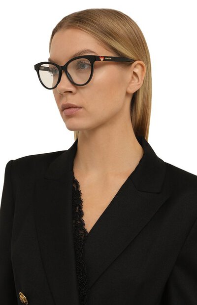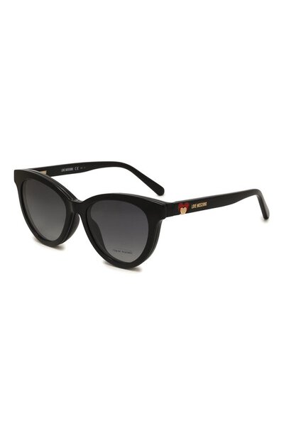 У черных солнцезащитных очков принадлежность марке деликатно обозначили миниатюрным логотипом на дужках, который дополнили элементами в виде сердец. Для изготовления аксессуара со съемным клипоном мастера бренда использовали гладкий легкий ацетат.
