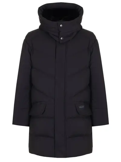 -Модель прямого кроя с длинными рукавами, прорезными карманами с клапанами, высоким воротником-стойкой с отделкой мягким мехом кролика, объемным капюшоном, застежкой на молнию, ветрозащитной планкой на кнопках.