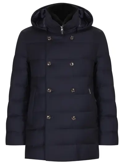 -Темно-синий стеганый пуховик из шерсти от MONTECORE.
