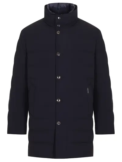 -Модель прямого силуэта с длинными рукавами, прорезными карманами, воротником-стойкой, внутренней стеганой вставкой с застежкой на молнию, основной застежкой на пуговицы.