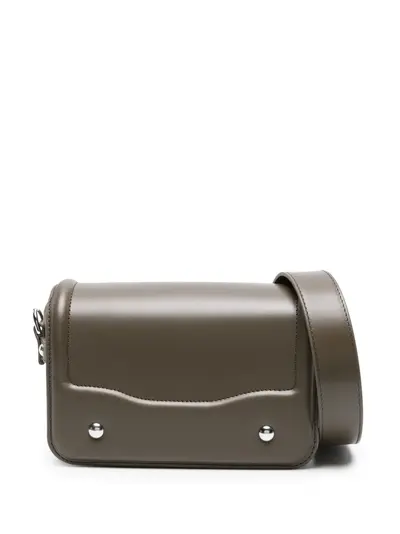 khaki calf leather smooth grain tonal stitching silver-tone stud embellishment debossed logo to the rear foldover top with magnetic fastening adjustable detachable shoulder strap internal logo patch internal slip pocket main compartment canvas lining