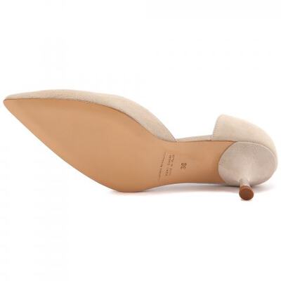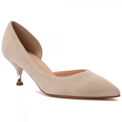 Туфли из натуральной замши от Principe di Bologna. Бежевые туфли с боковым вырезом добавят нотку элегантности в ваши образы. Модель выполнена из натуральной замшевой кожи, на каблуке kitten heel. Внутри подклад и стелька из натуральной кожи. Металлическая вставка на каблуке создаёт оригинальный акцент. Туфли будут уместны как в деловом стиле, так и для образов на особенные мероприятия.