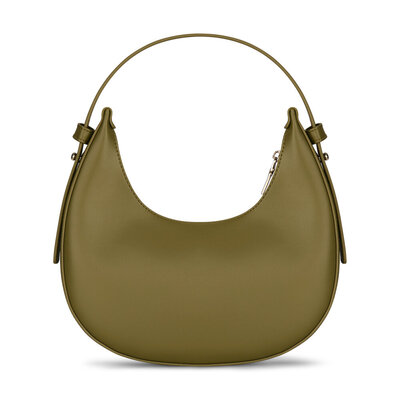Ультрамодная сумка-хобо из искусственной кожи цвета хаки – выбор для стильных женщин. Идеальные округлые формы делают её подходящей как для повседневных, так и для более официальных образов. Внутри большое отделение для вещей и дополнительный карман на молнии. Благодаря плотному каркасу сумка отлично держит форму, а с помощью регулируемых ручек – всегда можно настроить на удобную длину.