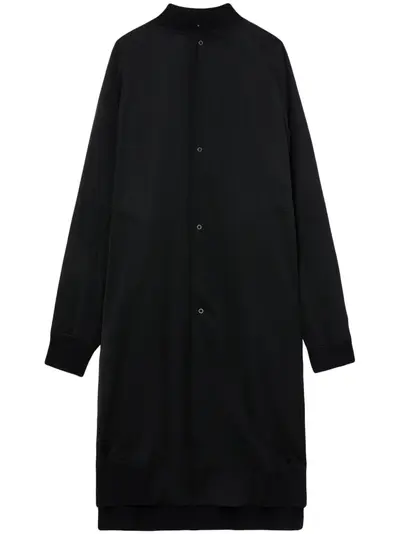 black baseball collar front button fastening high-low hem two zip-fastening pockets mid-length