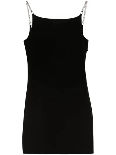 black stretch-design cady texture dart detailing engraved logo to he straps square neck open back two detachable cube-chain shoulder straps sleeveless thigh-length concealed side zip fastening straight hem logo-jacquard lining