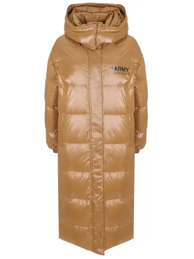-Удлиненный стеганый пуховик карамельного цвета от YVES SALOMON.