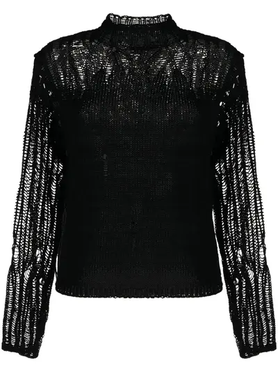 jet black wool blend knitted construction gradient effect mock neck drop shoulder long sleeves straight hem slip-on style