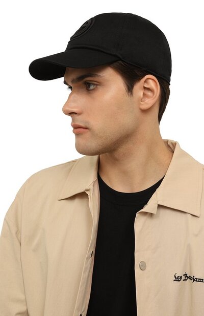 Черная бейсболка получилась предельно лаконичной, поэтому впишется в повседневный образ в разной палитре. Модель выполнили из мягкого плотного хлопка с добавлением эластана. Сзади изделие дополнили регулируемым ремешком с металлической брендированной пряжкой. Спереди аксессуар украсили монограммой, вышитой нитями в тон.