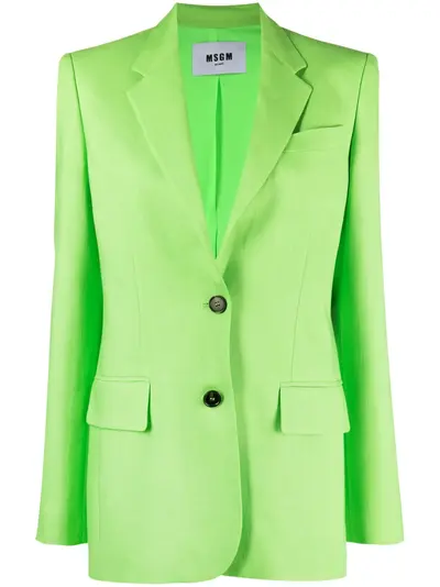 neon green textured finish tailored design dart detailing notched lapels front button fastening shoulder pads long sleeves buttoned cuffs chest welt pocket two front flap pockets Italian rear vents straight hem satin lining