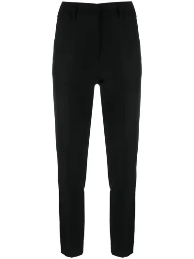 black stretch-design belt loops concealed front fastening mid-rise tapered leg cropped leg two side inset pockets two rear welt pockets