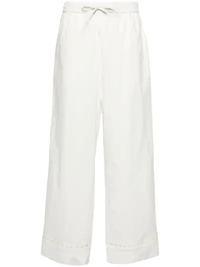 white stretch-cotton openwork areas elasticated waistband straight leg drawstring fastening
