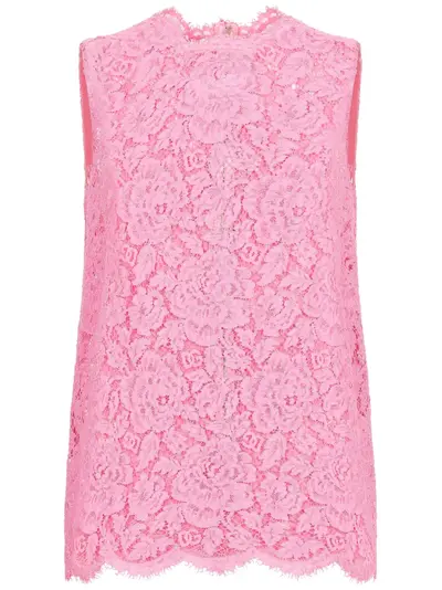 flamingo pink floral-lace detailing rear zip fastening scallop collar sleeveless scallop hem