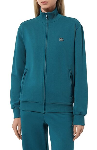 Толстовка насыщенного бирюзового цвета представлена эксклюзивно в ЦУМе. Для изготовления модели с боковыми карманами на молниях Доменико Дольче и Стефано Габбана выбрали мягкий хлопковый футер, который поддерживает оптимальную температуру и не ограничивает движения. Изделие с высоким воротом декорировали спереди знаковой серебристой монограммой DG, деликатно обозначив его принадлежность бренду.