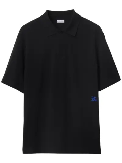 black cotton signature Equestrian Knight motif embroidered logo to the front polo collar short front button fastening short sleeves straight hem