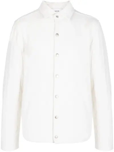 white wool blend pointelle knit front press-stud fastening slip pockets to the sides classic collar long sleeves straight hem