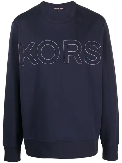 midnight blue cotton blend embossed logo to the front crew neck long sleeves ribbed cuffs and hem