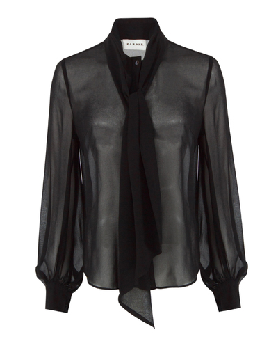 Блуза P.A.R.O.S.H. из полупрозрачного материала черного цвета. Модель свободного силуэта с завязками на бант.