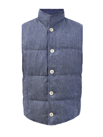 Универсальный и изысканный стиль пухового жилета из льна с эффектом денима от Brunello Cucinelli подчеркнут ценными материалами. Дышащая текстура натуральных волокон сочетается с легким утеплителем из высококачественного гусиного пера. Таким образом, модель становится идеальным выбором для носки поверх пиджаков, толстовок и джемперов, особенно в теплые месяцы. Сделано в Италии.
