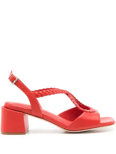 coral red calf leather braided strap crossover strap detail square open toe buckle-fastening slingback strap branded leather insole 45mm block heel