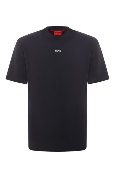 Темно-синюю свободную футболку сшили из мягкого плотного джерси, хорошо пропускающего воздух. Органический хлопок для материала вырастили на небольших африканских фермах без применения токсичных удобрений и искусственного орошения. Принадлежность марке обозначили миниатюрным логотипом спереди.