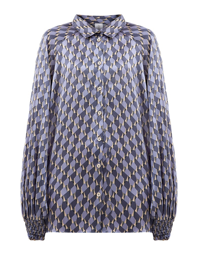 Eleventy Блуза из гладкого шелка с объемными рукавами и принтом 245333 (фиолетовый, lpn25492152)