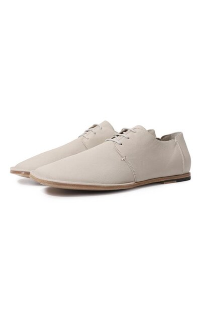 Кремовые дерби Crispy с вощеными шнурками – удачное завершение непринужденного летнего образа. Для пошива модели использовали тщательно выделанную зернистую кожу буйвола, которая отличается особенной прочностью, мягкостью и эластичностью. Обувь из такого материала удобно облегает стопу, а за комфорт при ходьбе отвечает тонкая подошва с едва заметным каблуком. Ее соединили с верхом в технике san crispino, поэтому туфли получились легкими, гибкими и долговечными.