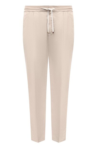 Светло-бежевые брюки станут основой образа для офиса с нестрогим дресс-кодом или для прогулок в городе. Модель со стрелками делает максимально комфортной тонкая дышащая ткань, сочетающая нити льна и хлопка. Изделие из такого материала хорошо пропускает воздух и поддерживает оптимальный микроклимат даже в зной. Посадка на талии регулируется эластичным поясом-кулиской.