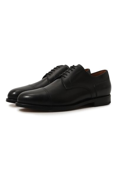 Для создания дерби с двойными строчками использовали гладкую итальянскую кожу. Ее тонко выделали вручную, поэтому туфли комфортно сидят на ноге, будто сшитые по индивидуальным меркам. Конструкция Blake делает модель с миндалевидным мысом гибкой и легкой.