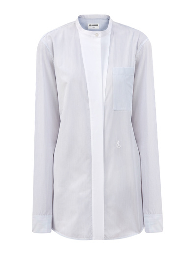 Jil Sander Рубашка из хлопкового поплина в полоску с вышитой монограммой 245655 (голубой, lpn25553376)