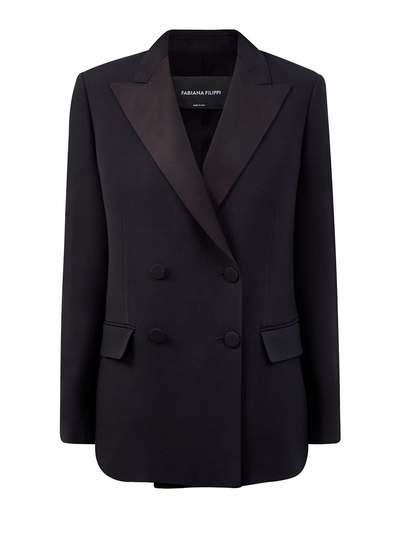 Fabiana Filippi Двубортный жакет в стиле смокинга из шерстяного и шелкового крепа 245665 (чёрный, lpn25553411)
