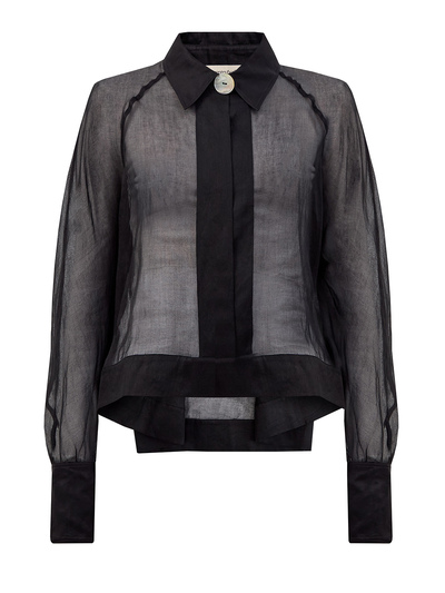 Gentryportofino Полупрозрачная блуза из хлопкового шифона с перламутровой пуговицей 245436 (чёрный, lpn25553424)